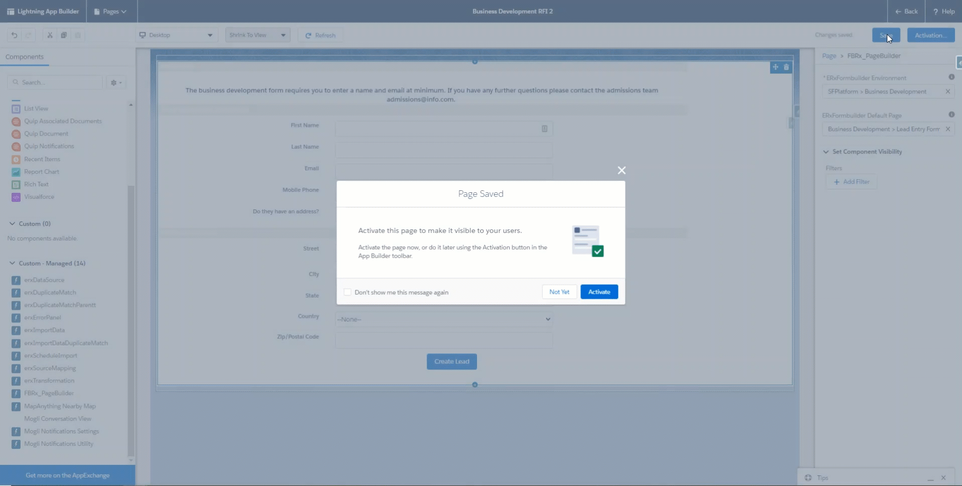 Section 2. Adding the Form to a Lightning Page