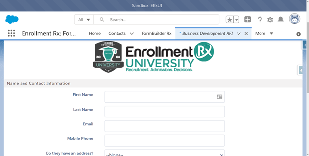 Salesforce Platform Forms allow you to leverage many capabilities of Formbuilder Rx that are not available in a standard Lightning page. For example, a Formbuilder Rx page will allow you to update/create multiple related objects at once (like an application and contact), and allow for paragraphs, images, virtual fields and many other rich features. Common examples of Formbuilder Rx and Salesforce Platform Forms can be leveraged are internal business development forms or admission counselor forms updating multiple items at once.
