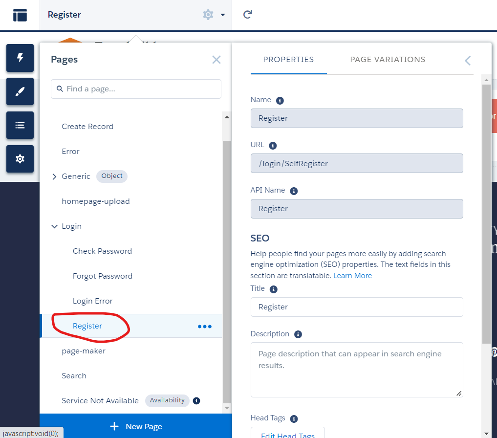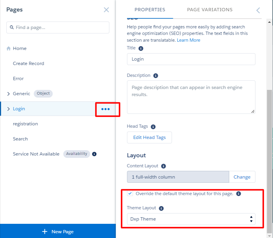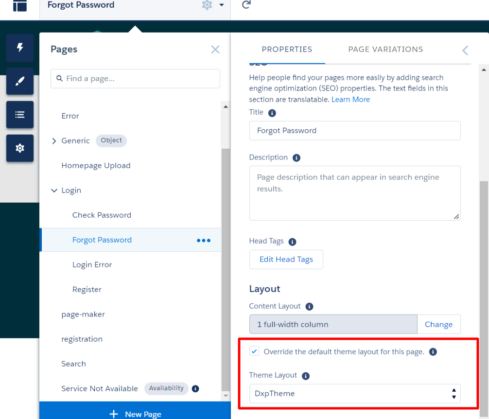 Drag and drop “DXP Component to page same as above register page” and map the DXP theme.