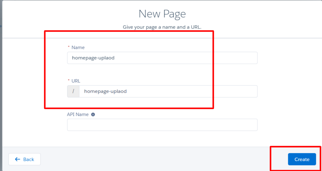 - Enter the name as “dxp-checklist-upload” and click the Create button