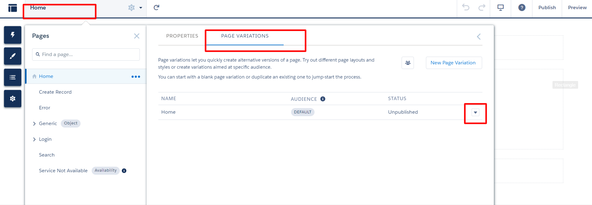 The first step is to clone the existing home page variation and mark a new one as default ( to achieve the flexible layout).