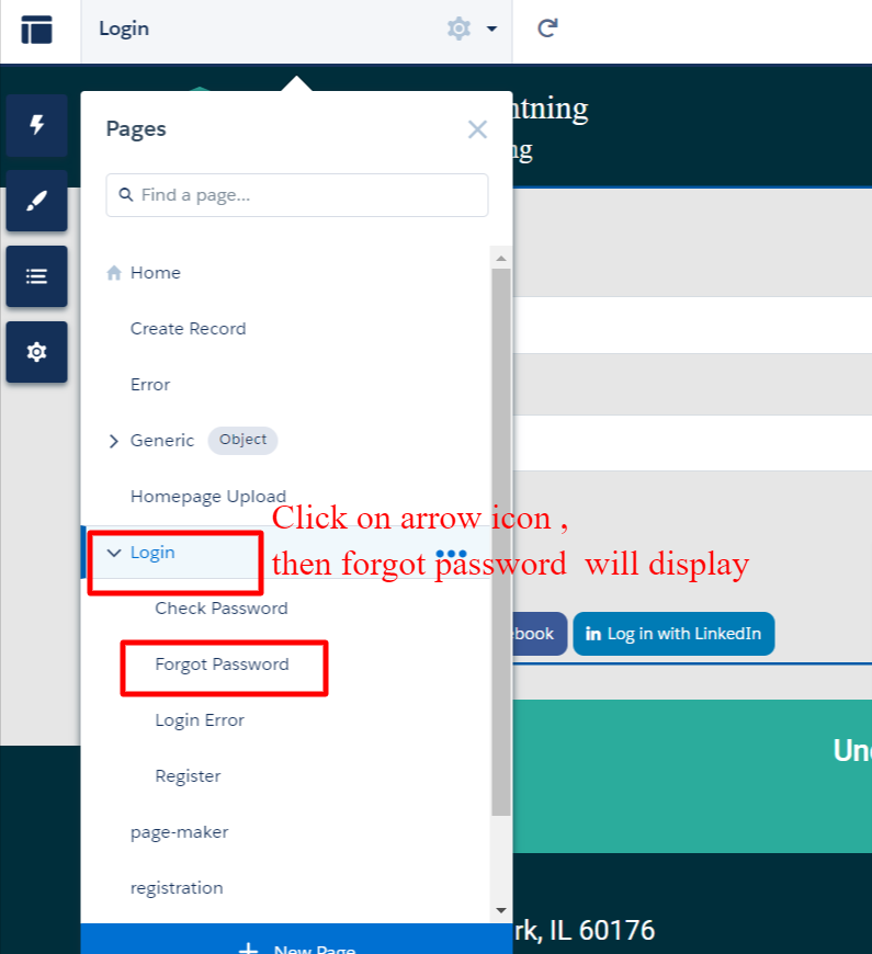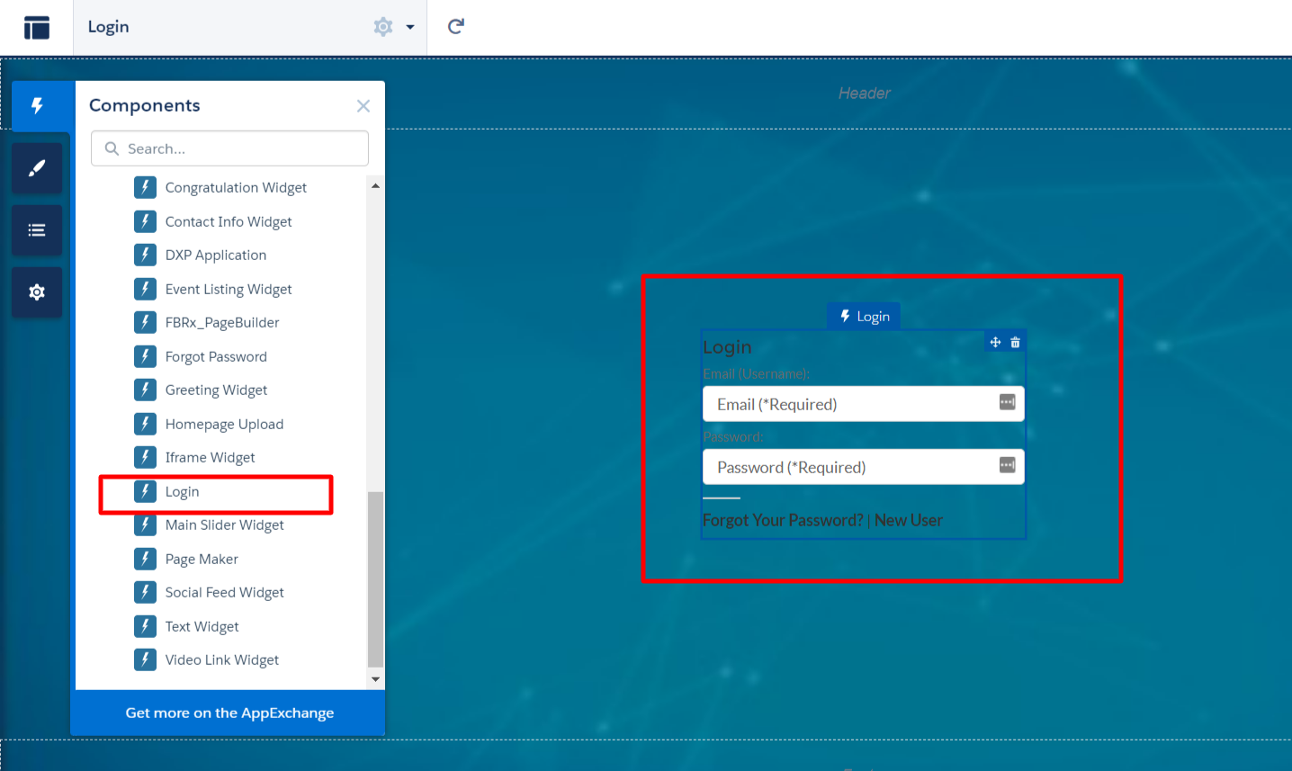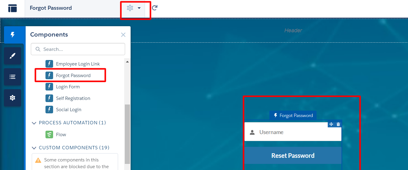- Go to components and drag and drop the Forgot Password component to the Forgot Password page