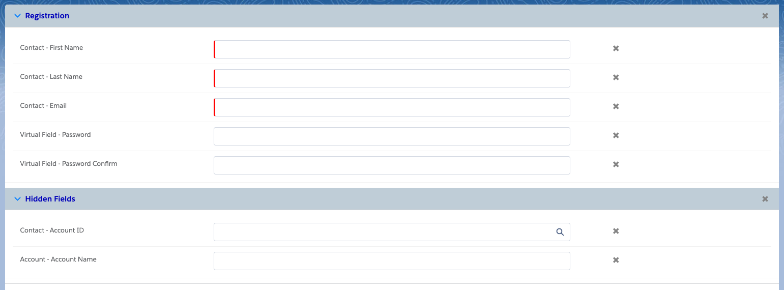- Create a Registration Section, and map fields to it: