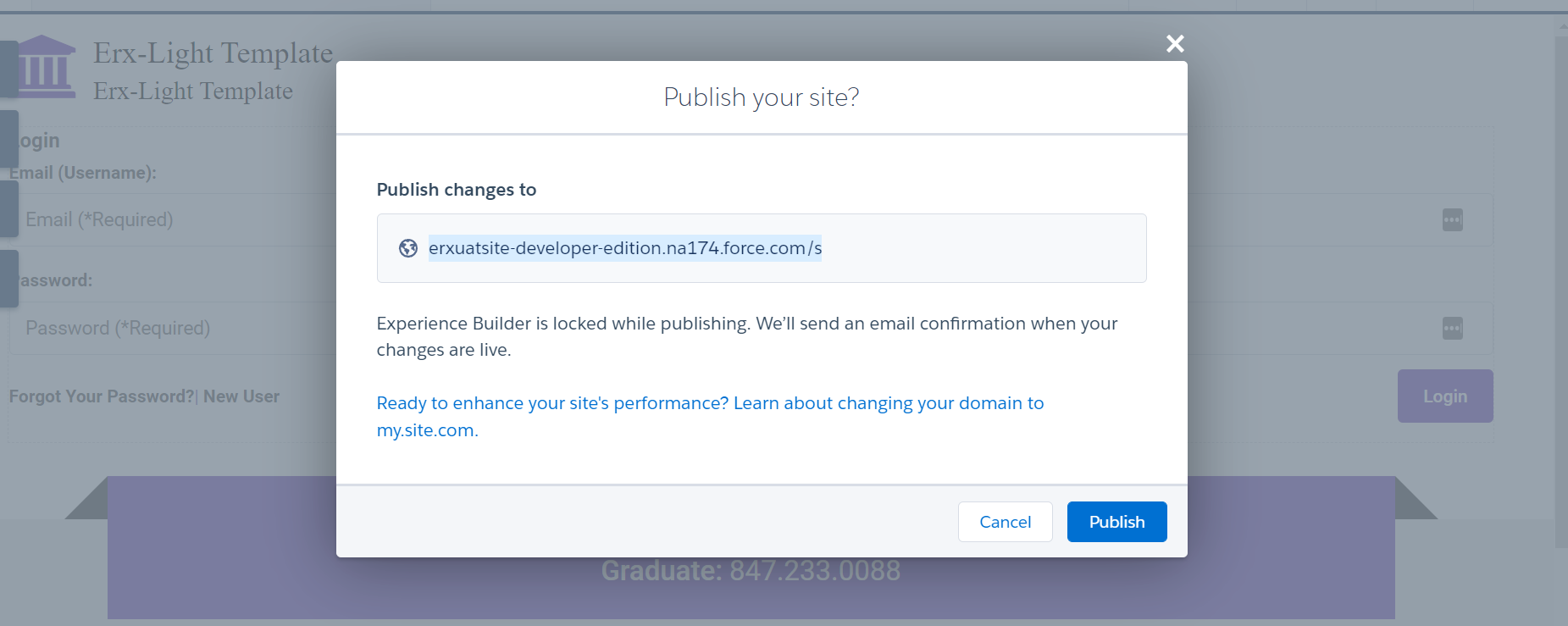 - In DXP when you click the Publish button in Experience Builder, you can see one URL that will be redirected to the login page