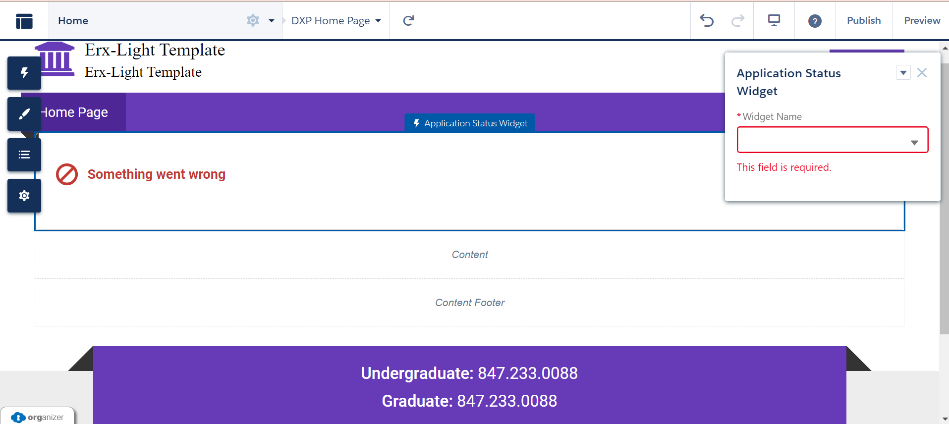 In the homepage configuration, you need to create all records related to the homepage using the widget (e.g., Application Status, Social Feed, Apply Now, Contact Info, iFrame, Video, Greeting, etc.).
