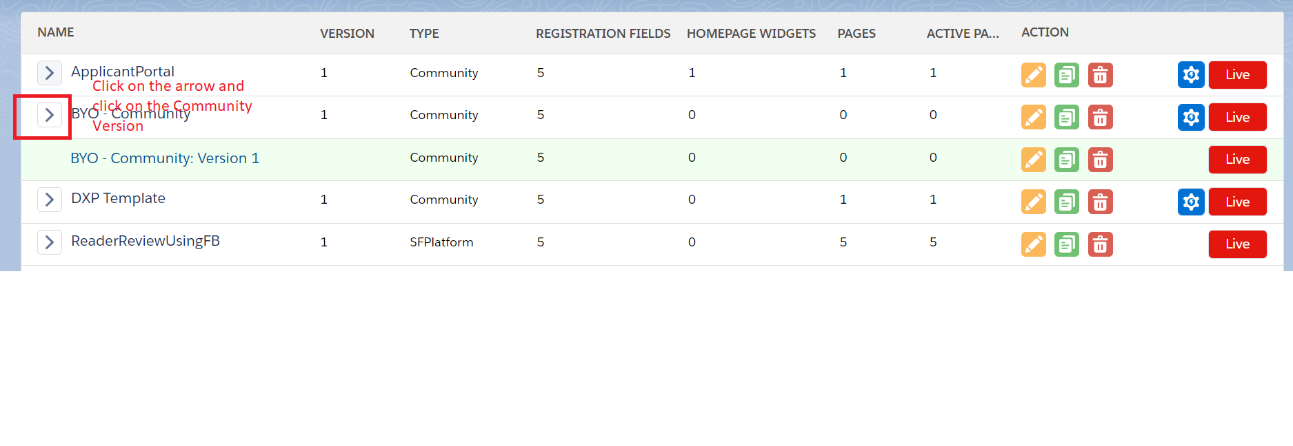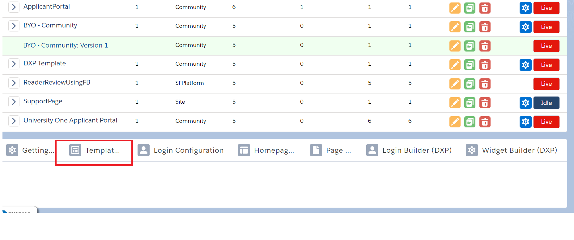 - Click the Builder button on the Community site
