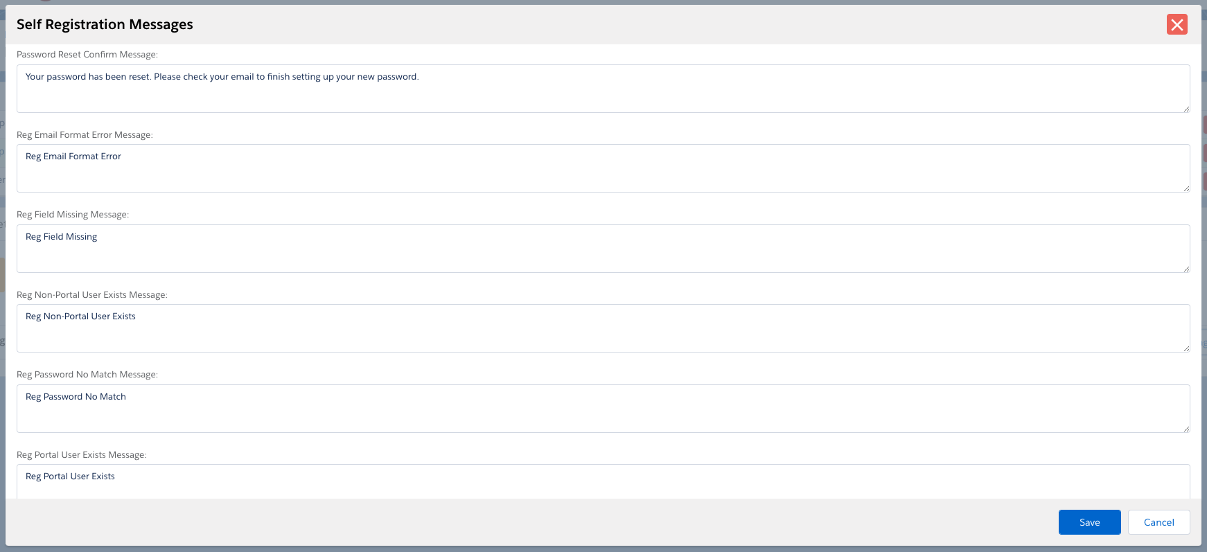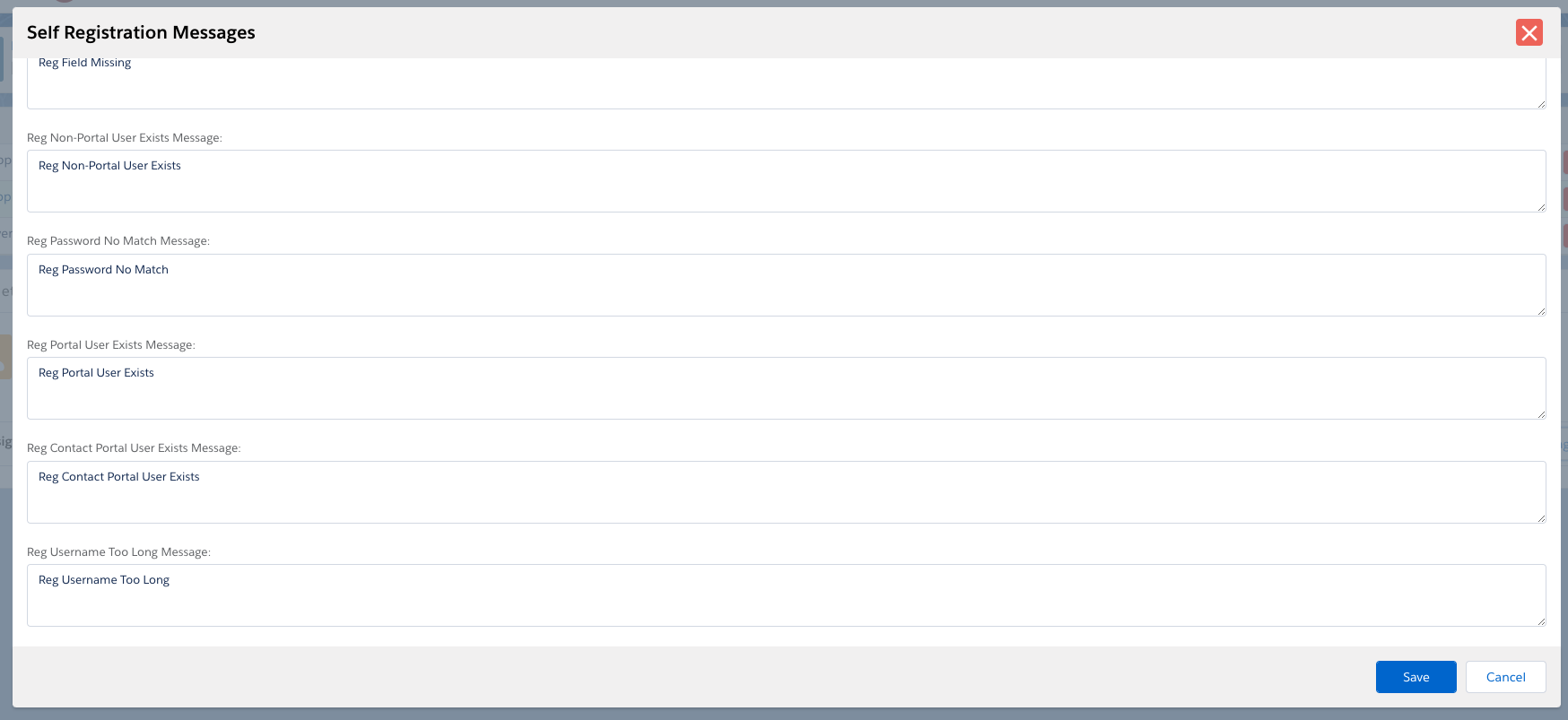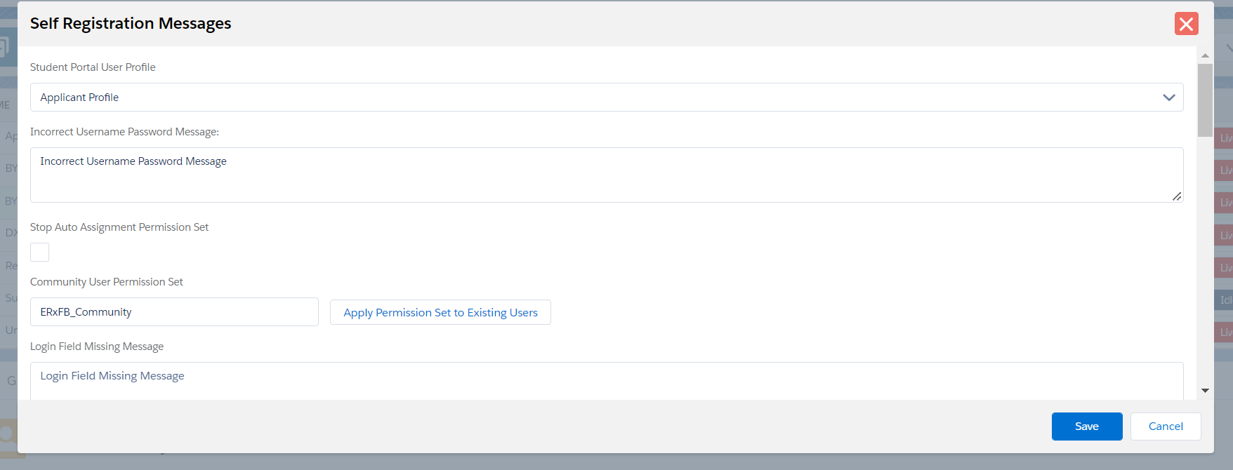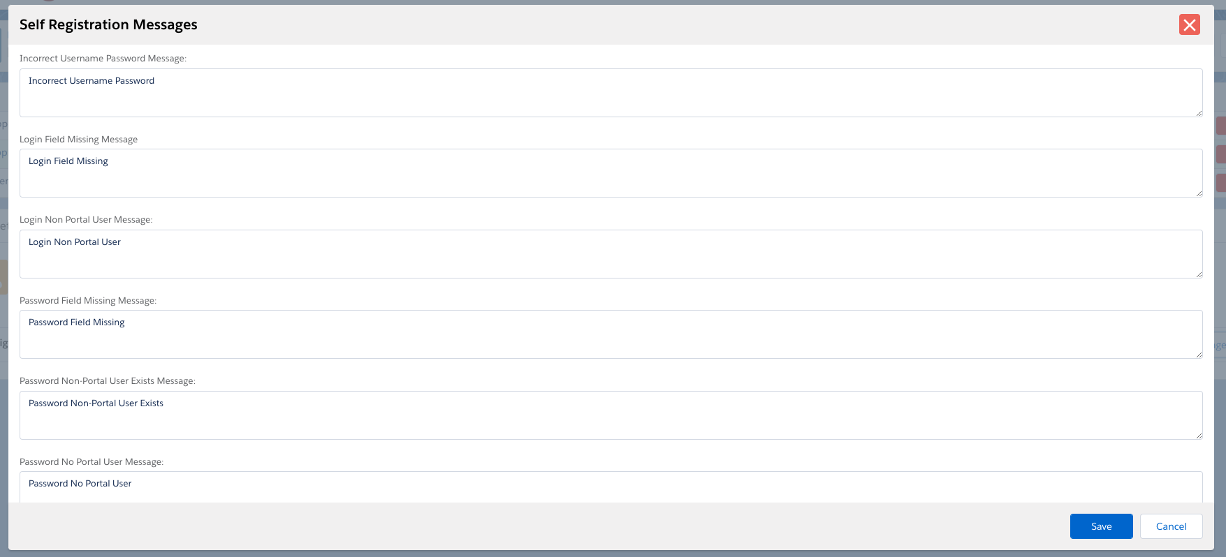- All self-registration fields starting at Incorrect Username Password