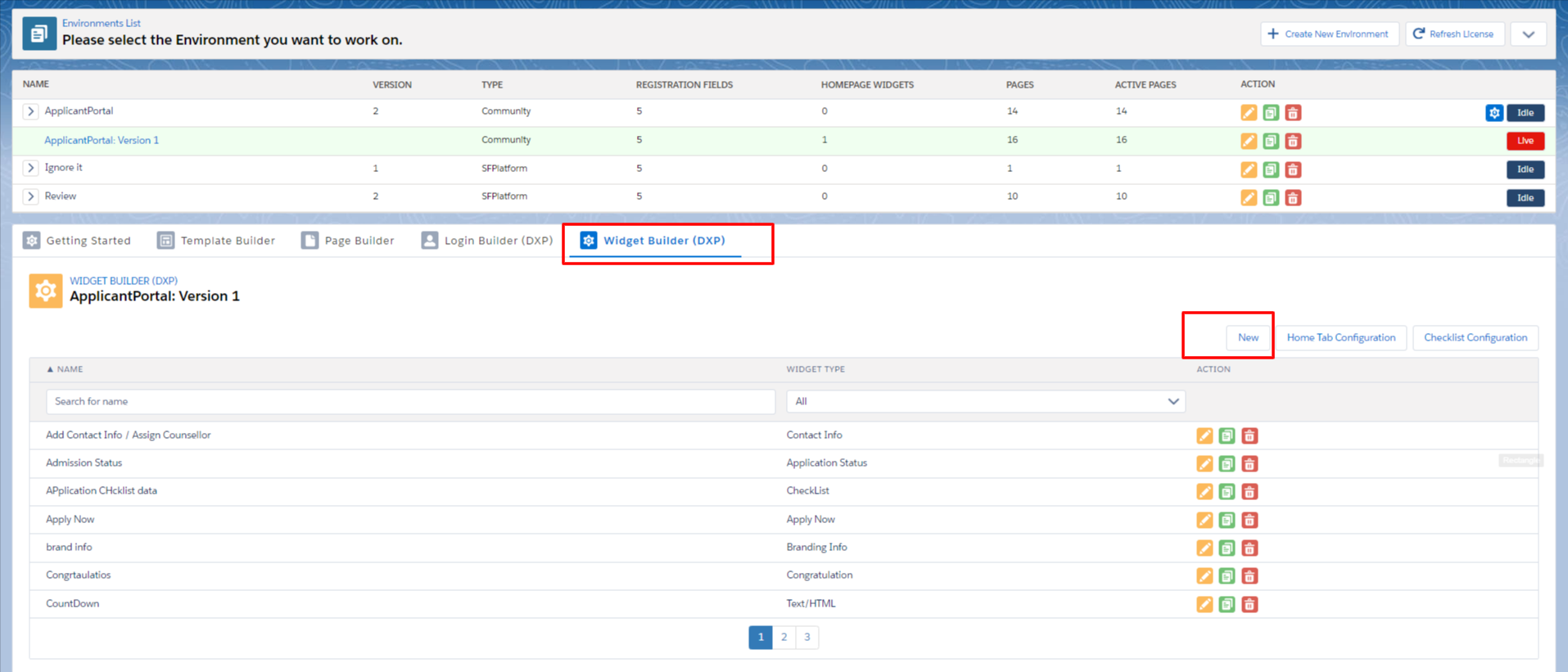 - Click on Widget Builder (DXP)