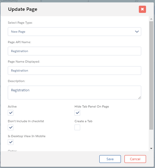 - On the Page tab, click Create New Page and enter the following details: