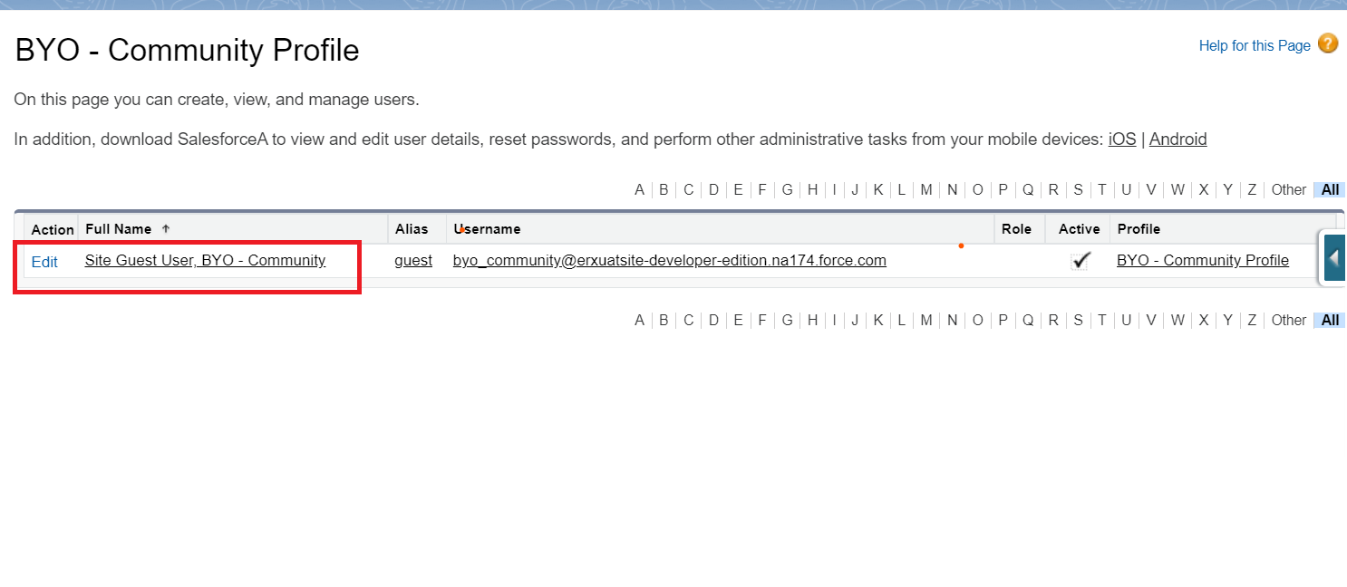 - Click on the name of the Site Guest user