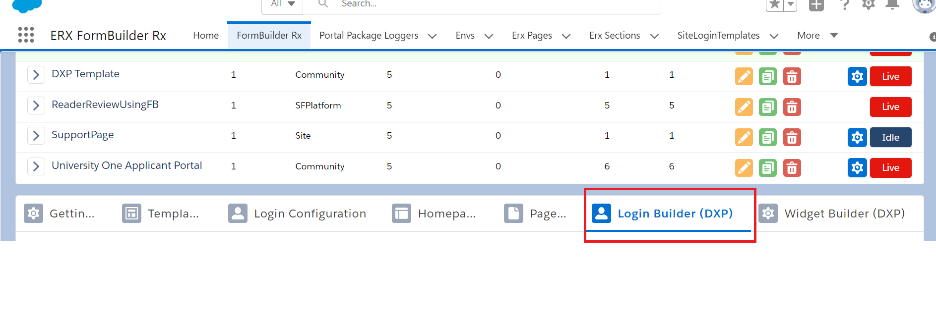 - Click on the Login Builder (DXP) tab