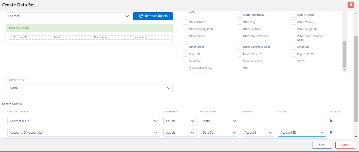 - Account ID (from the Contact data set)