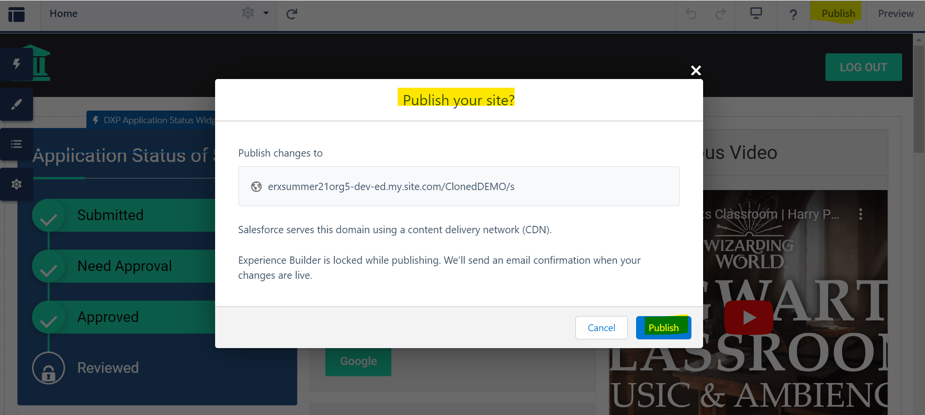 - In the Digital Experience of your Lightning Community, click on the Publish