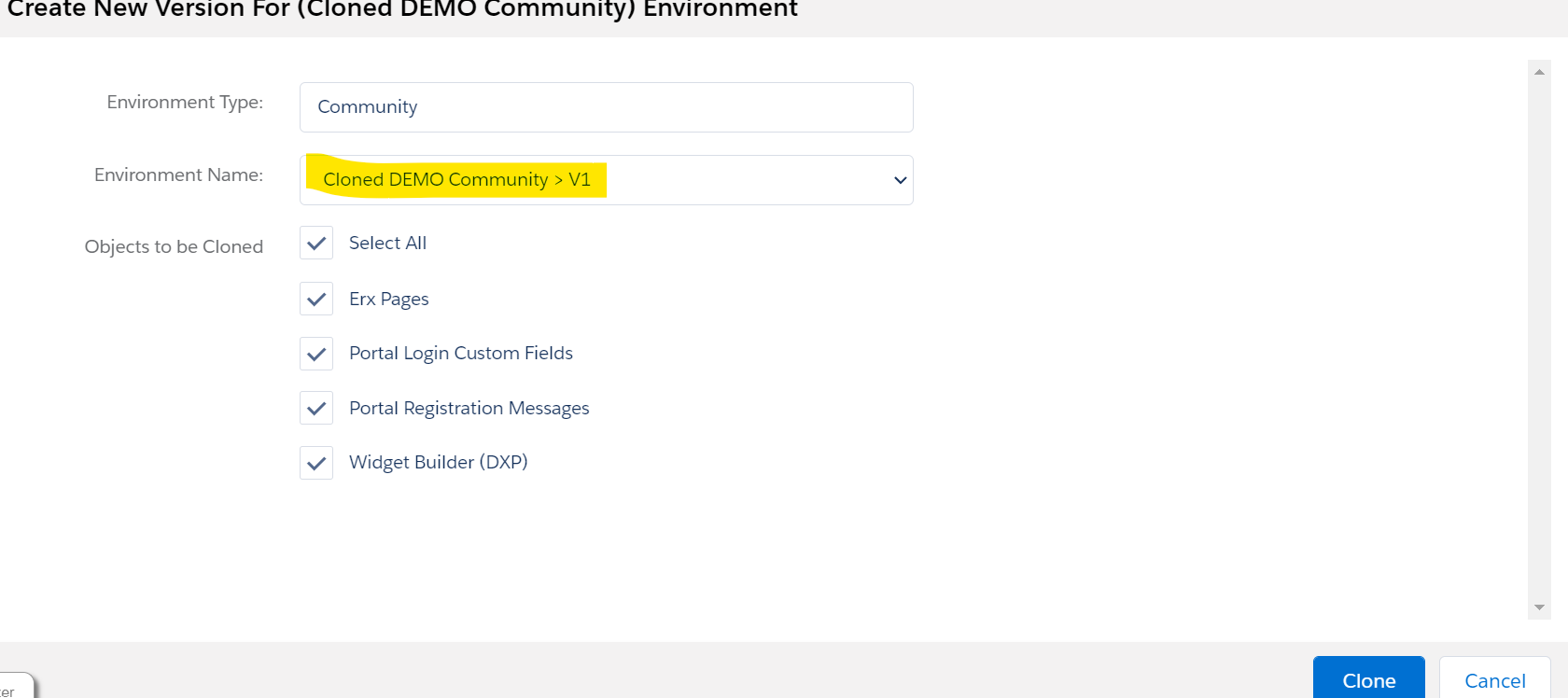 When a new FormBuilder Rx Community Environment is cloned, new versions of your pages and widgets are created as well. As a result, they need to be configured and mapped into your Digital Experience Community.