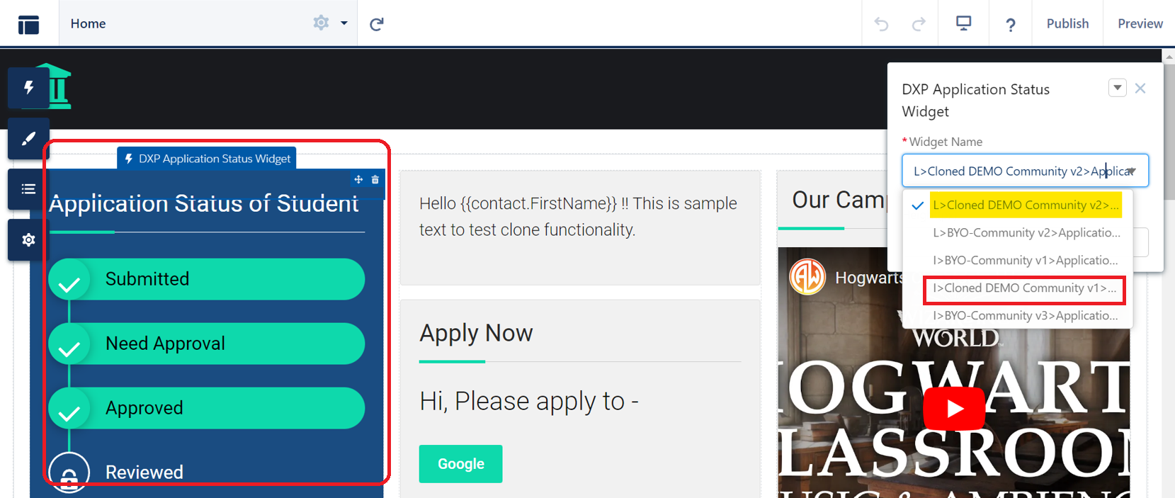 DXP ApplicationDXP Application Status WidgetDXP Apply Now WidgetDXP Branding Info WidgetDXP Checklist WidgetDXP Congratulations WidgetDXP Contact Info WidgetDXP Event Listing WidgetDXP iFrame WidgetDXP Main Slider WidgetDXP Social Feed WidgetDXP Text/HTML WidgetDXP Video Link Widget
