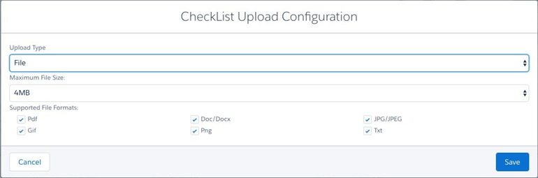 Populating these fields will make the checklist item into a hyperlink. When clicked, a window will open that contains a file upload widget (if “Allow Upload” has been checked), instructive text (if “Instructive Text” has been populated), or a link to an external URL (if "External URL" is populated). “Instructive text” can contain hyperlinks, if you wish to direct the user to an external website.