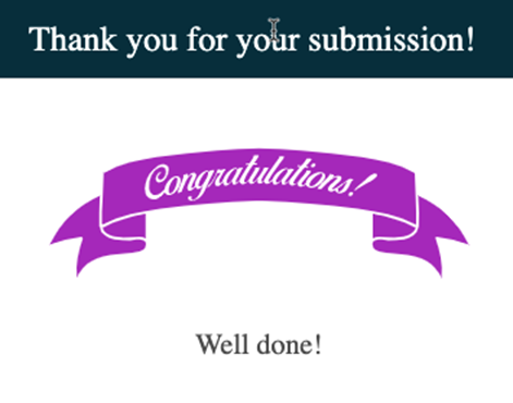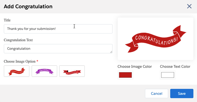 Congratulations Widget Library Item This library item displays like this on the “Dark” template. It displays differently with different templates. Here is the configuration wizard: