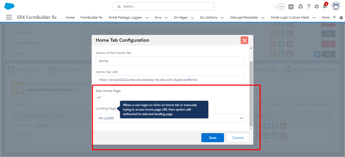 - Navigate to Homepage Builder under the Environments List on the FormBuilder Rx tab