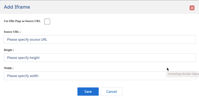 iFrame Widget Library Item You can put a iFrame onto the homepage as a widget. It can contain one of the pages belonging to the environment, if you check the box “User Erx Page as Source URL."