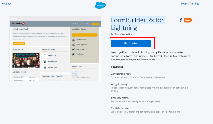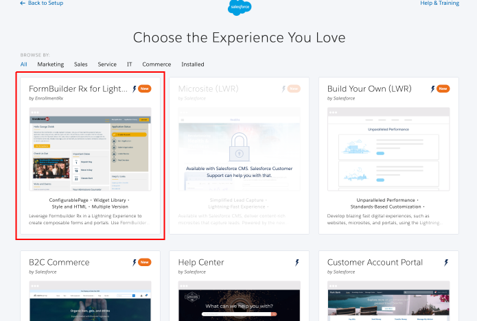 - Choose the Enrollment Rx Bolt Solution Template named "FormBuilder Rx for