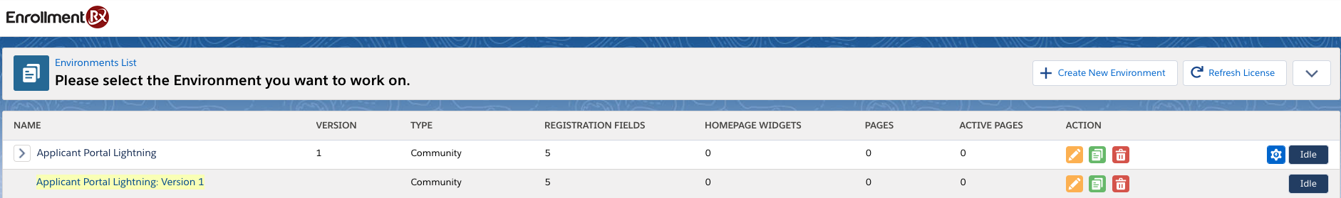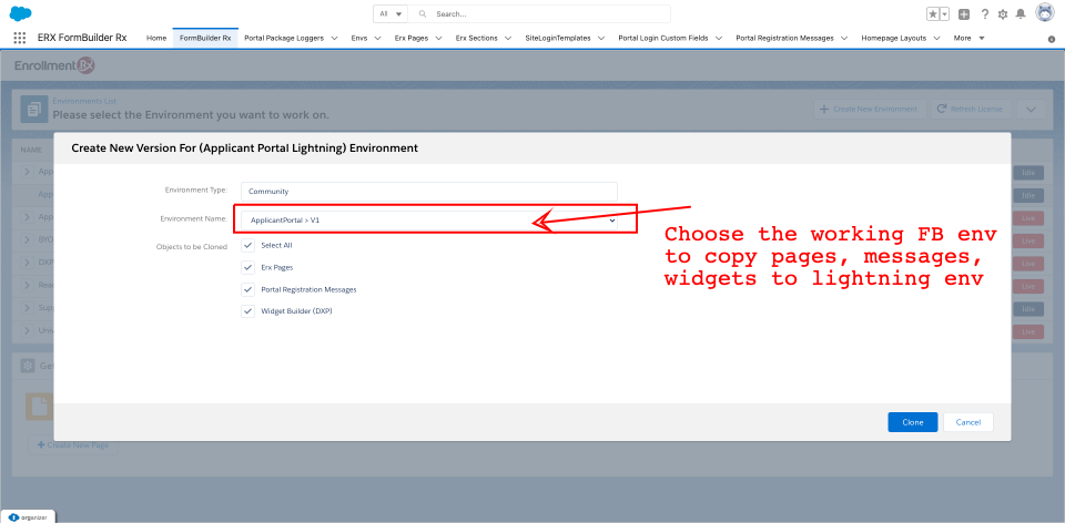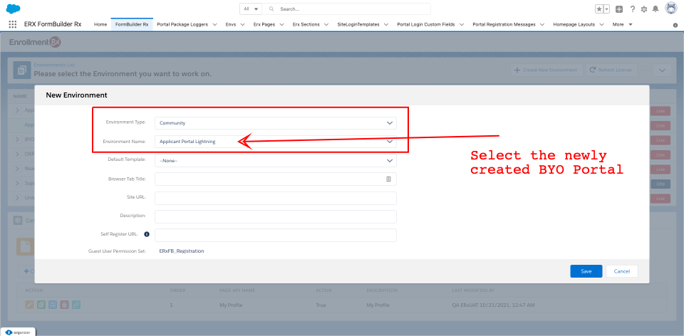 - Select a new FormBuilder Environment.