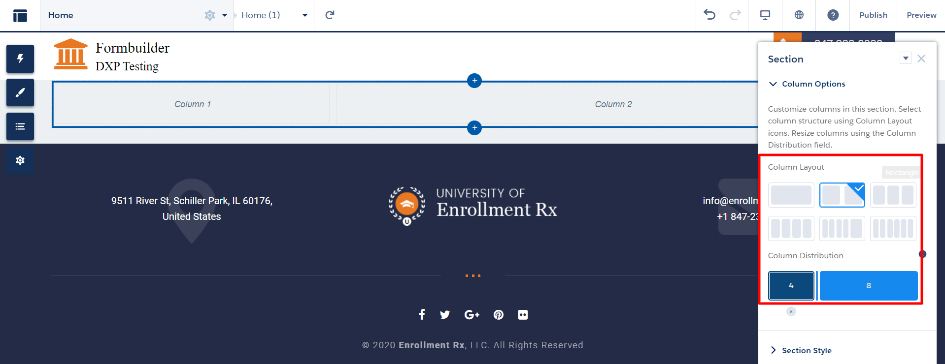 - In Experience Builder, go to the homepage and change the Column Layout setting