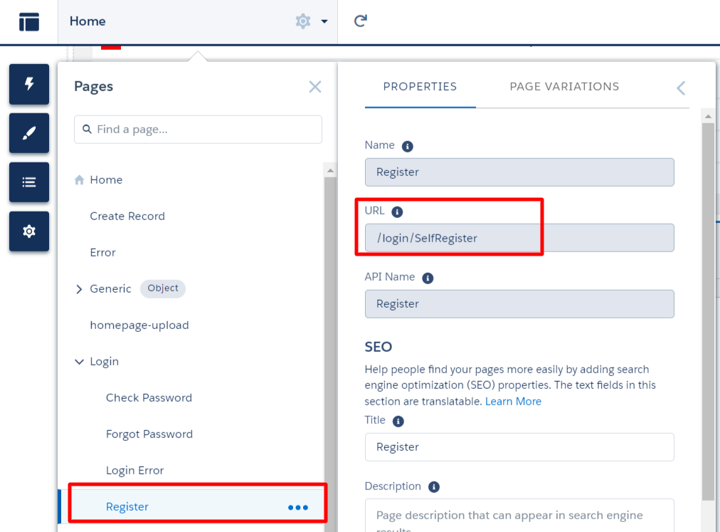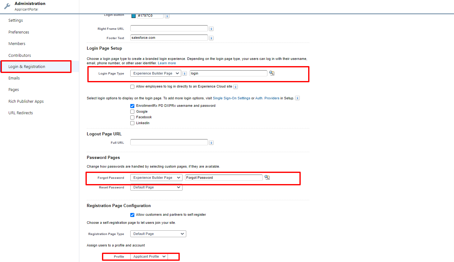 - If it's not the first page, you'll need to append a Page Maker ID to the above URL https://dxpwinter22-developer-edition.na213.force.com/ApplicantPortal/s/login/SelfRegister?lc__pageid=Registration