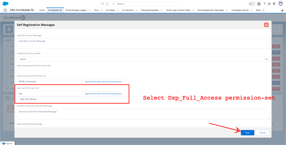 - Select the Dxp_Full_Access permission set and Save.