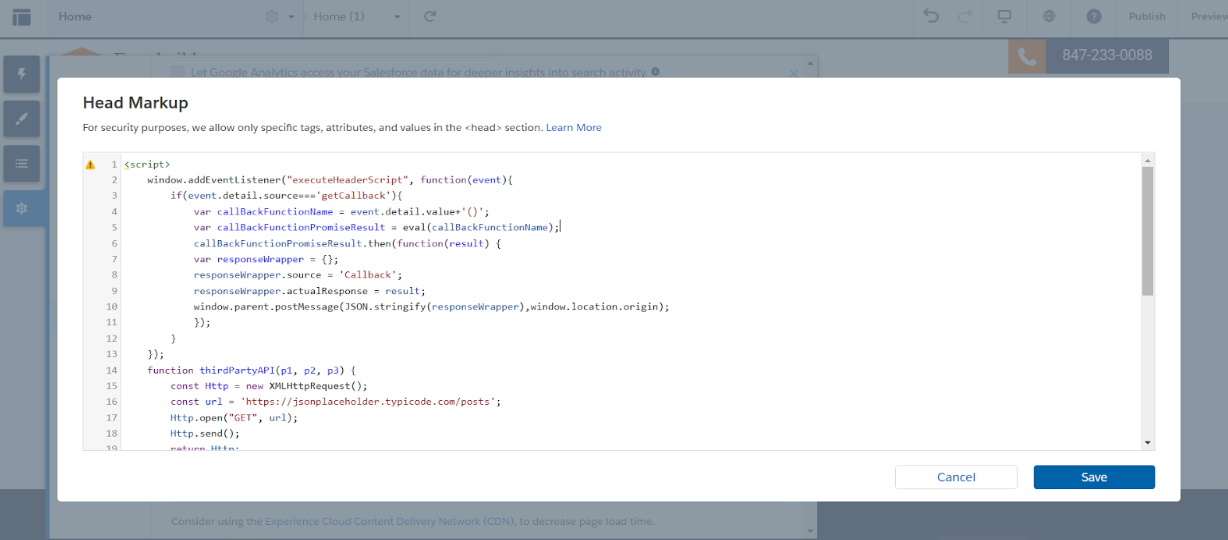 - Copy the script code from Template and paste in Experience Head Markup