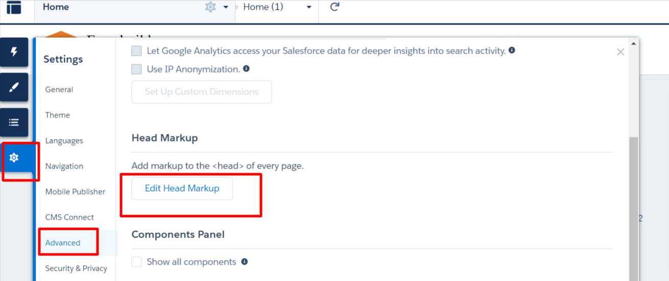 - Go to Experience Builder, click on Settings, click on Advanced, and click the