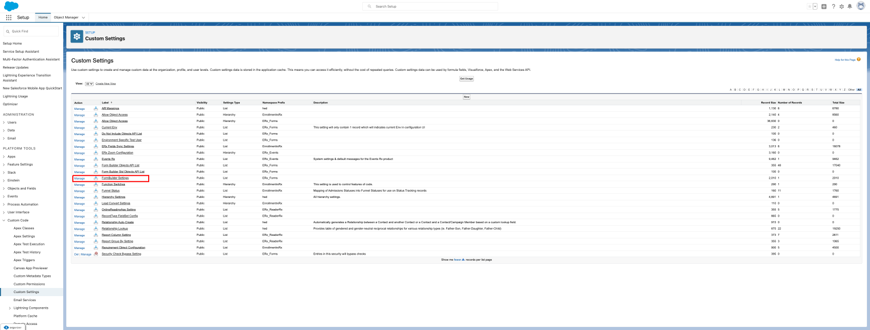 - Go to and search for “Custom Setting” in the Quick Find box. Go to the