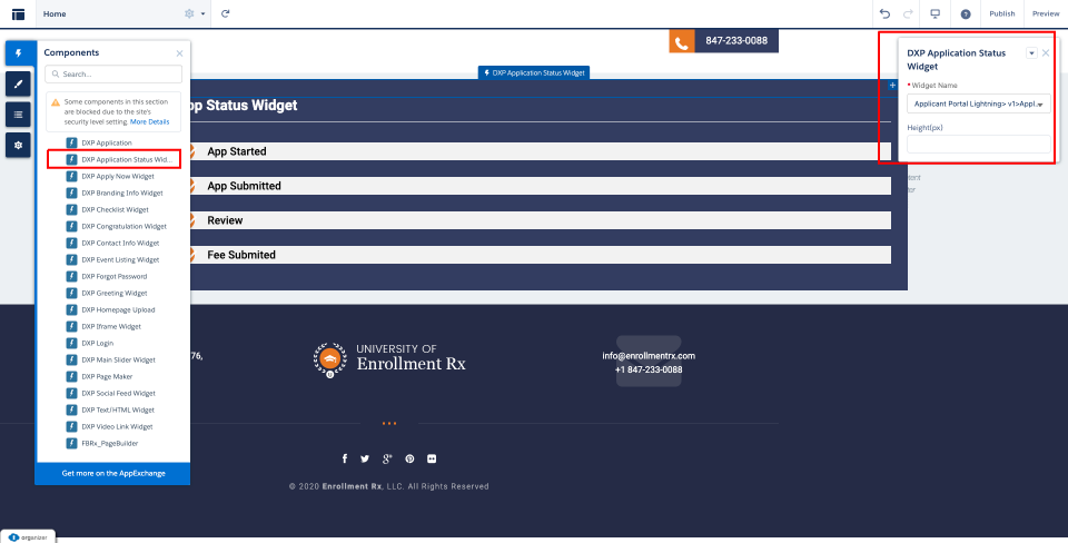 - Click on the Components icon and drag and drop the DXP Application Status