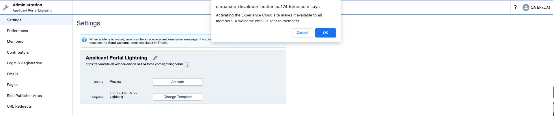 Update the FormBuilder Environment for the Registration URL