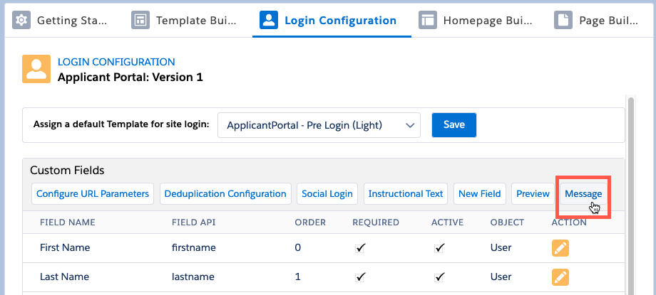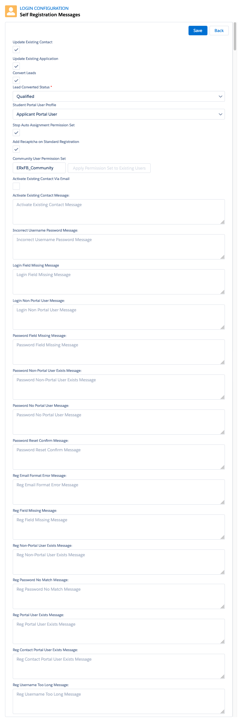 | Activate Existing Contact Message (Textarea) | This error message will display for the above condition. The user will need to open the email and click the link to log into the Community. |