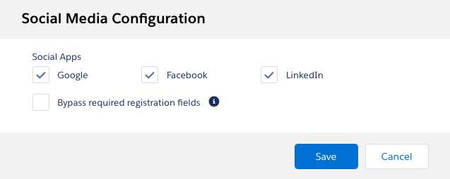 The checkbox “Bypass required registration fields” allows users to register using their social media credentials even if there are required fields on the registration page other than name and email. If the box is not checked and there are custom required fields on the registration page, then the user will still need to register through the normal registration form, but we will pre-populate their name and email address from the social media account.
