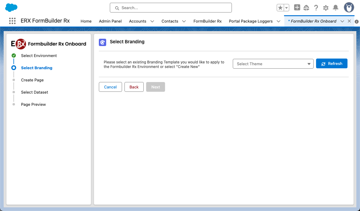 - This will step you forward to select branding for the environment.