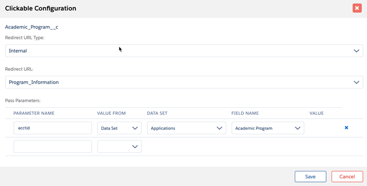 - Optionally, configure a reference field to be updated with the ID of the clicked