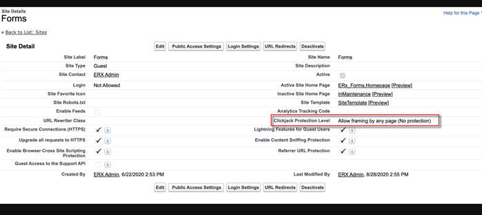 1. Set the Clickjack Protection Level of your FormBuilder Site