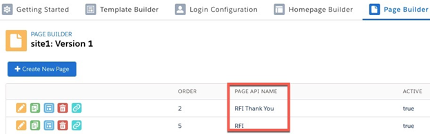 - Find your page’s API name in the PAGE API NAME column of Page