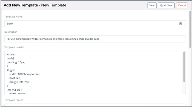 - Create a blank template to be used within the widget