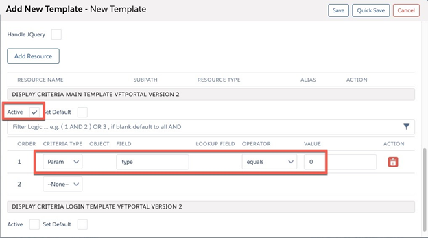 CRITERIA MAIN” section and set the criteria to display this template when the