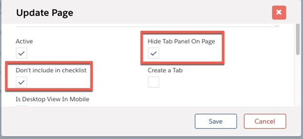 - so that the page does not appear as an item in the navigation checklist panel