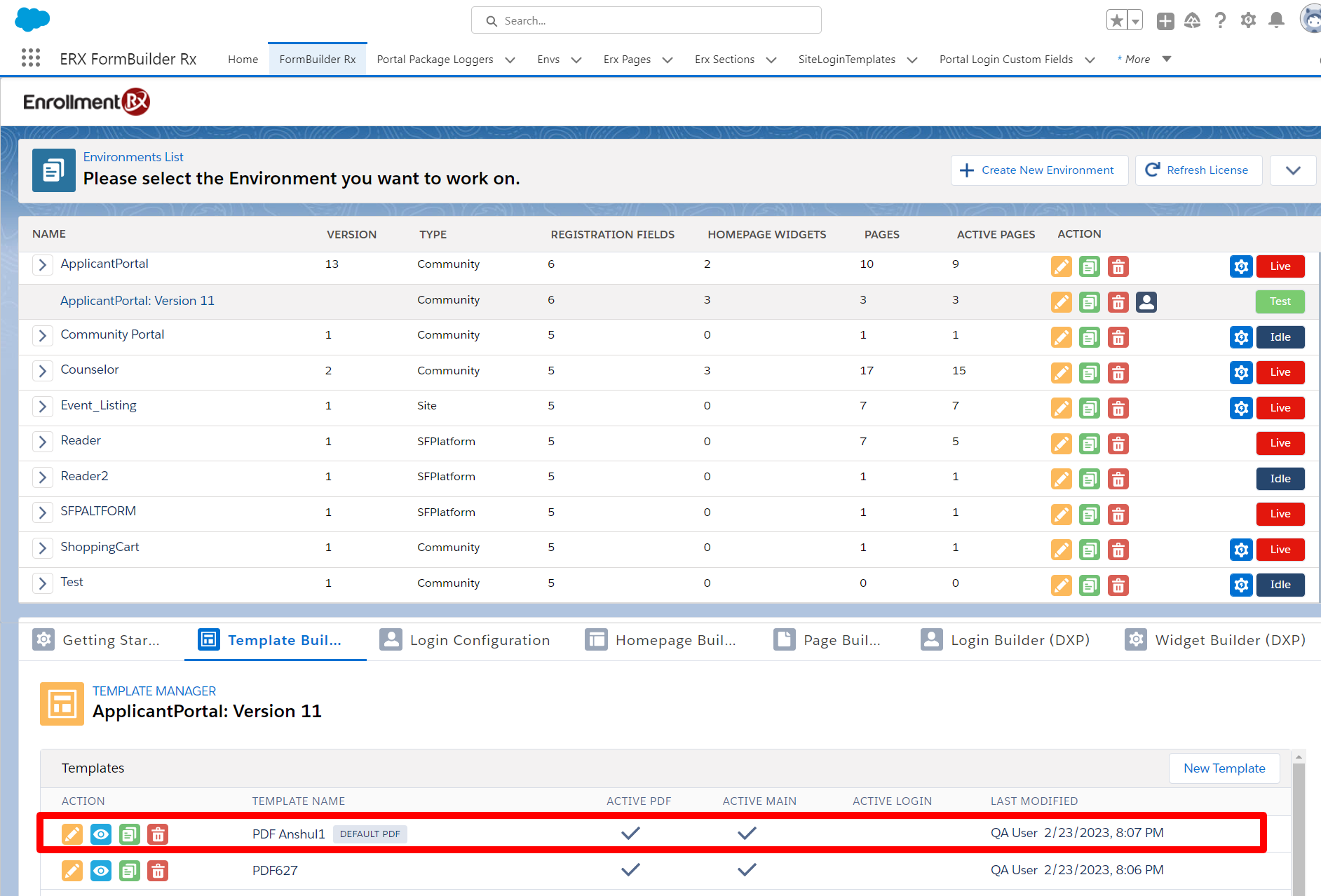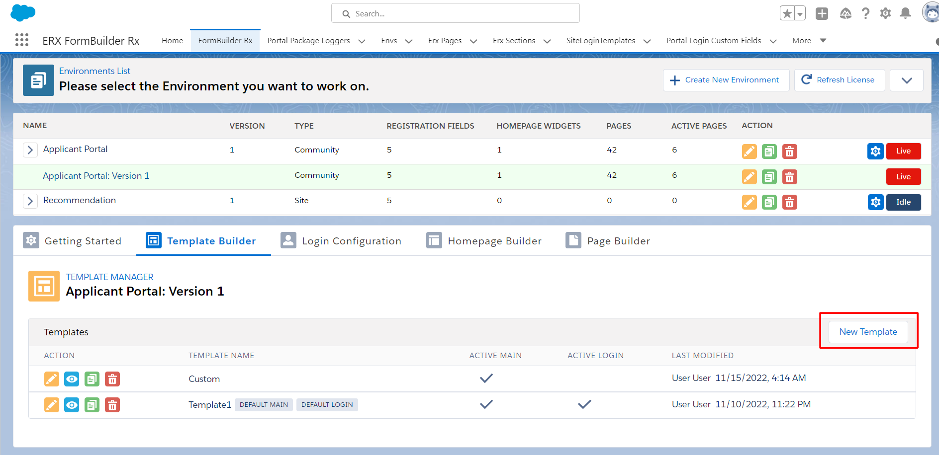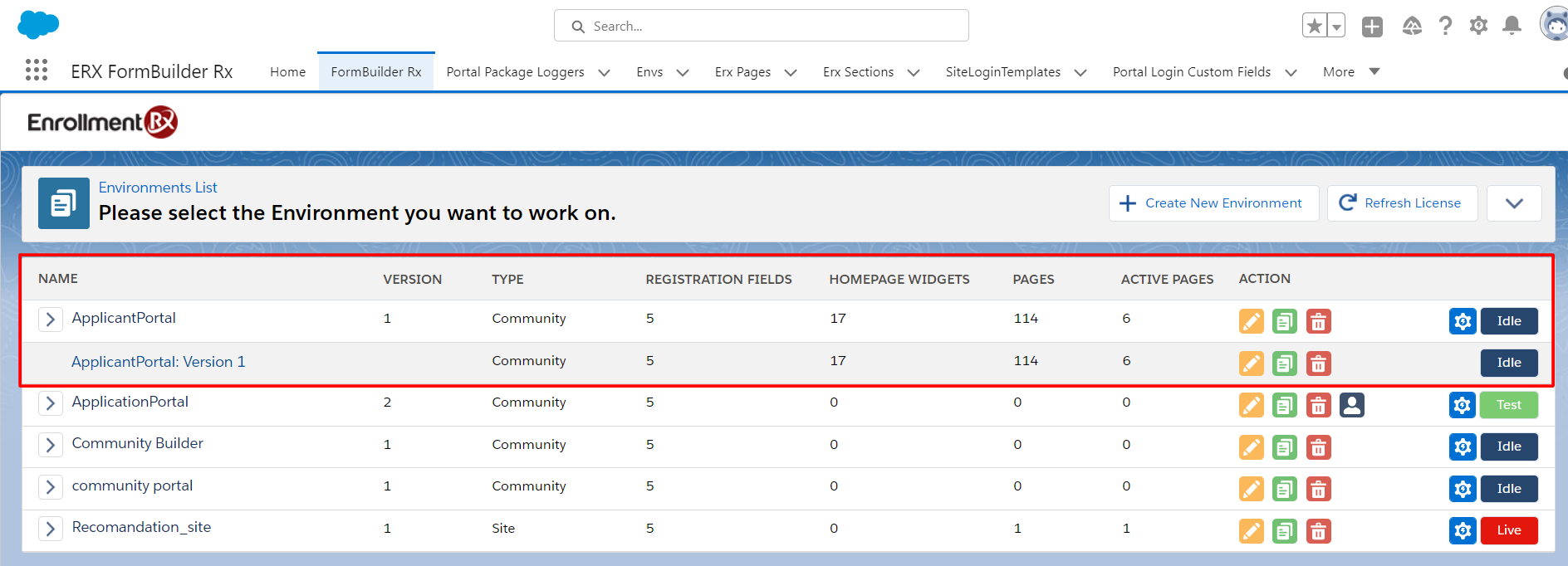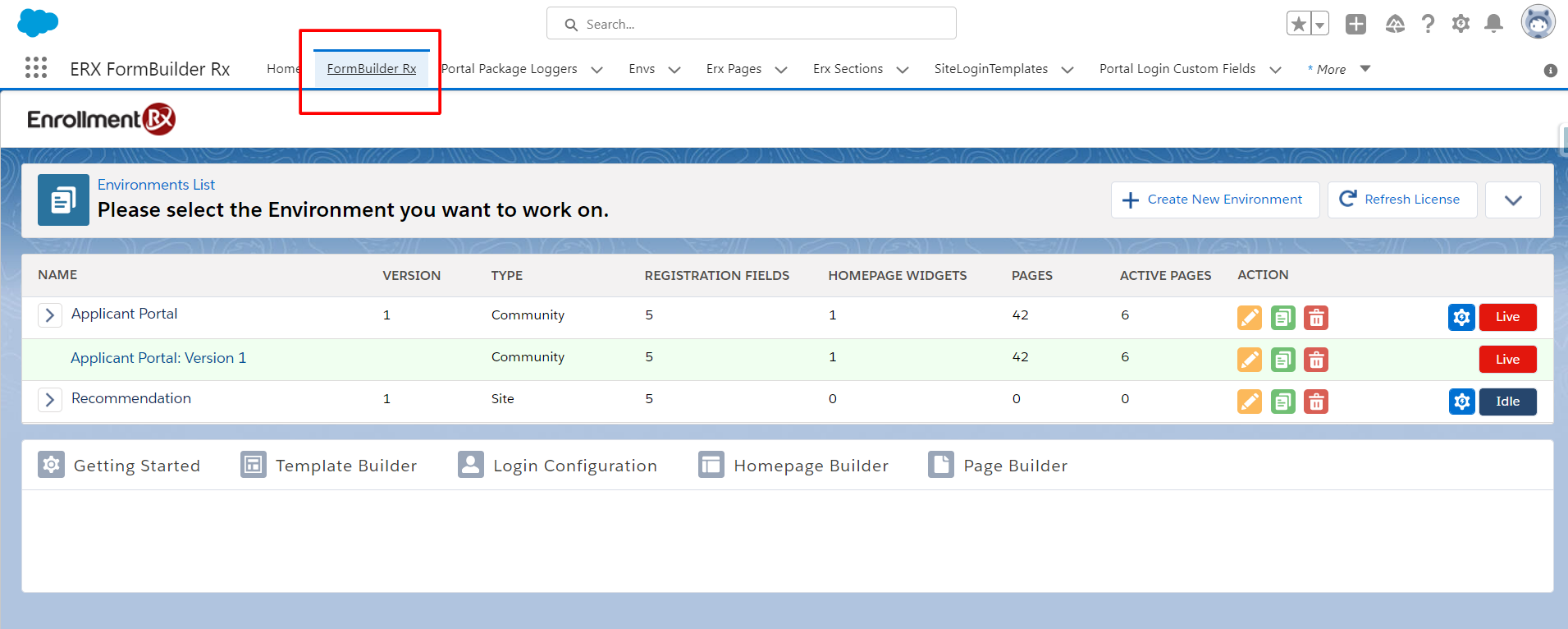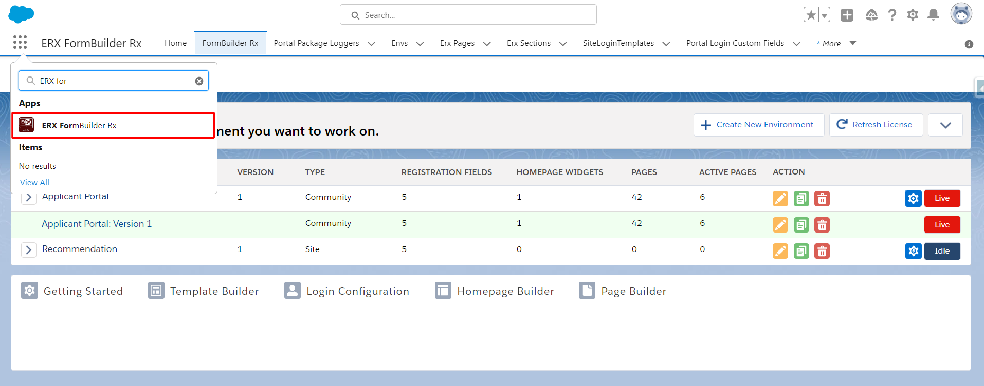 - Navigate to ERX FormBuilder Rx in the App Launcher