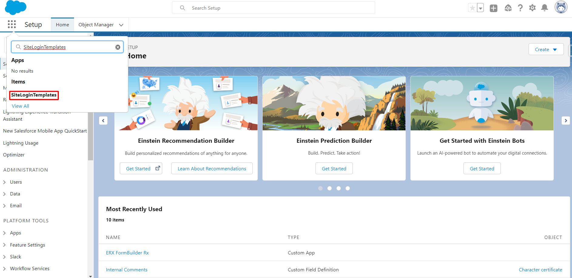 - Navigate to the SiteLoginTemplate via the App Launcher