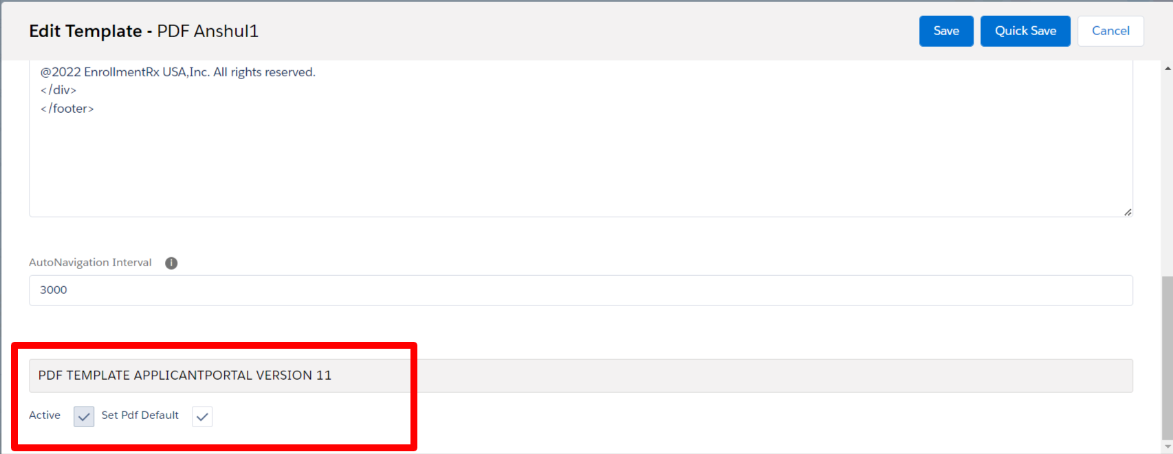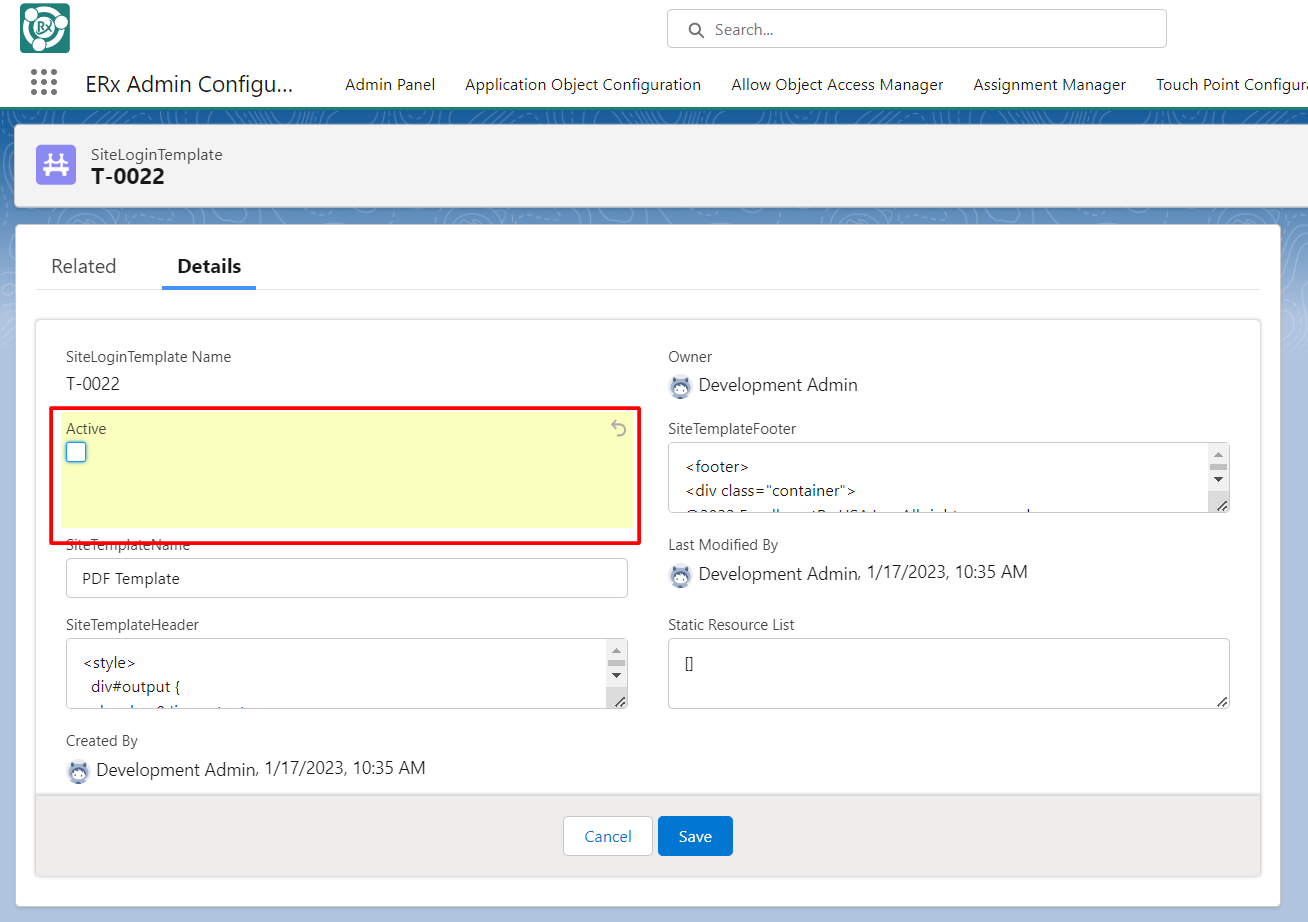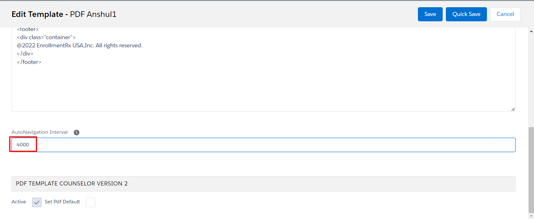 - Open the PDF Template and set it as "inactive" by deselecting the Active