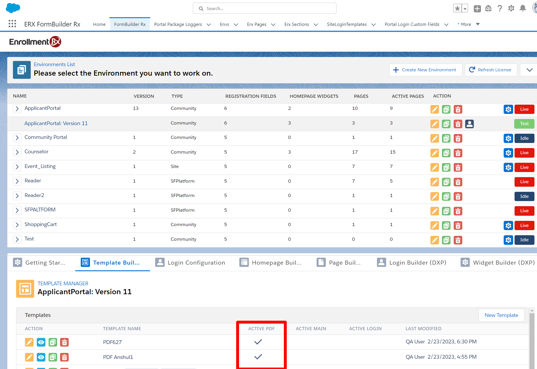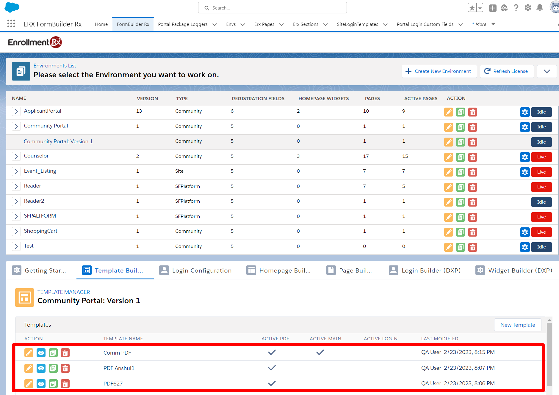 - Multiple PDF templates can be set to Active for a Community, but only one