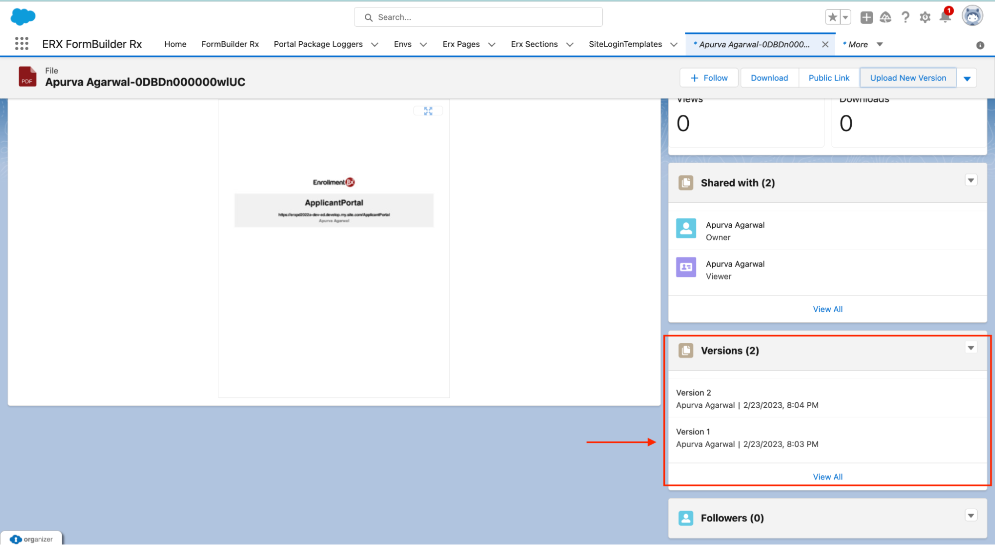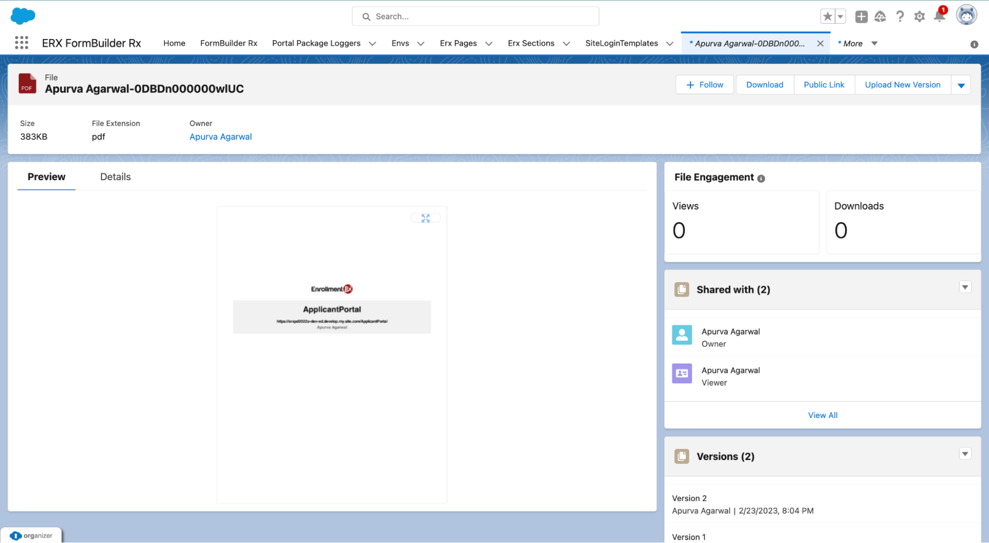 - Every time a PDF is generated, it will create a new version for the PDF and always refer to the latest version in Notes and Attachments. All versions of the PDF will be available like this: