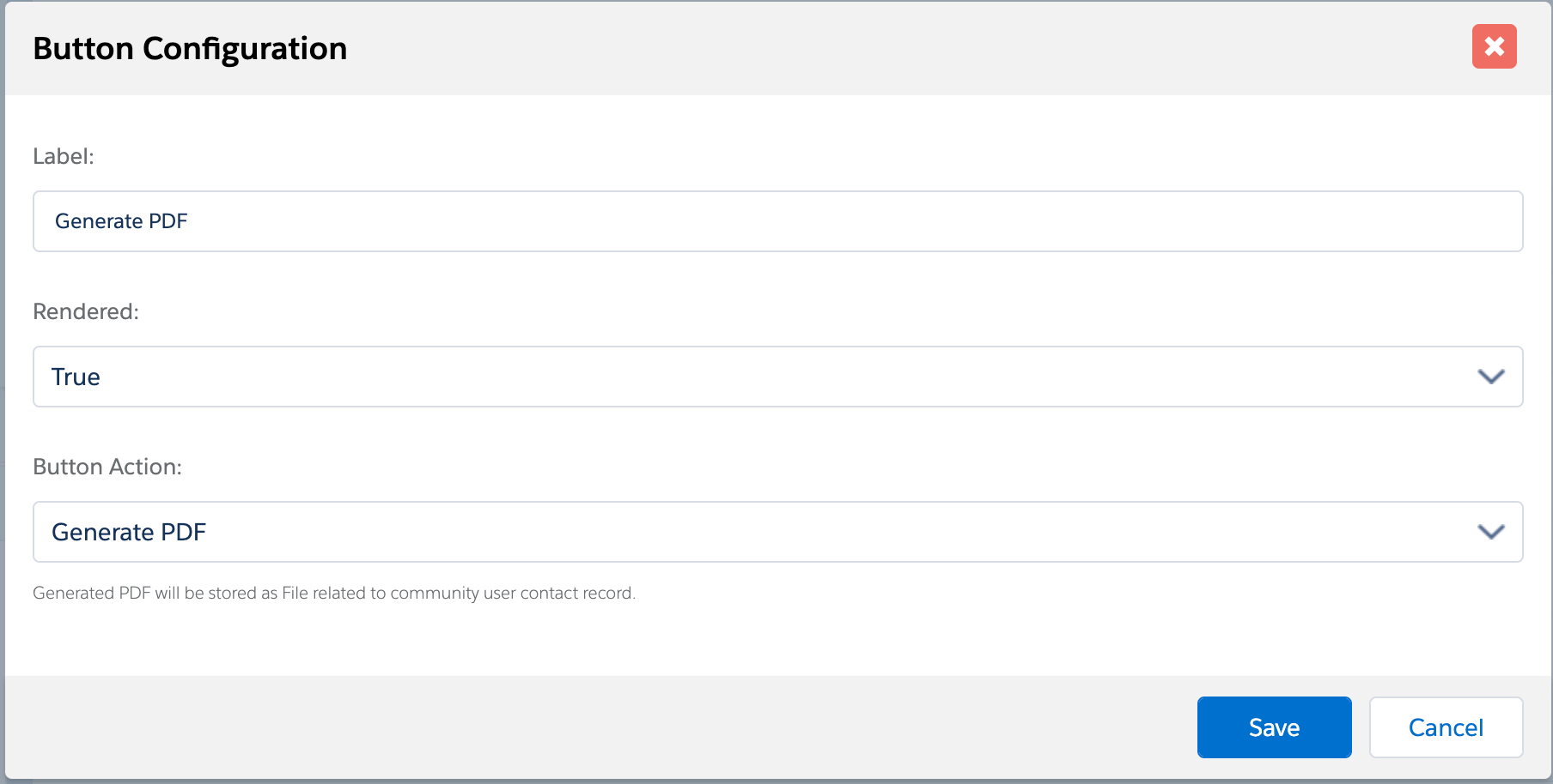 A button action labeled Generate PDF (introduced in 2023 Release 1) allows you to generate a PDF of Community Pages based upon user completion of pages. The steps below are divided into two sections, one for Admins and one for End Users.