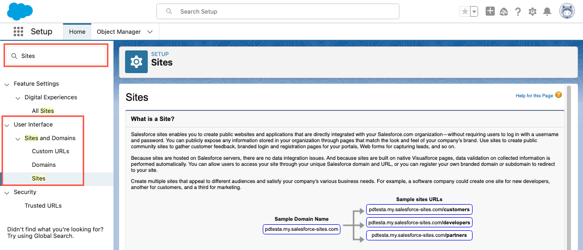 To begin the process, create a Site by navigating to Setup in Salesforce and