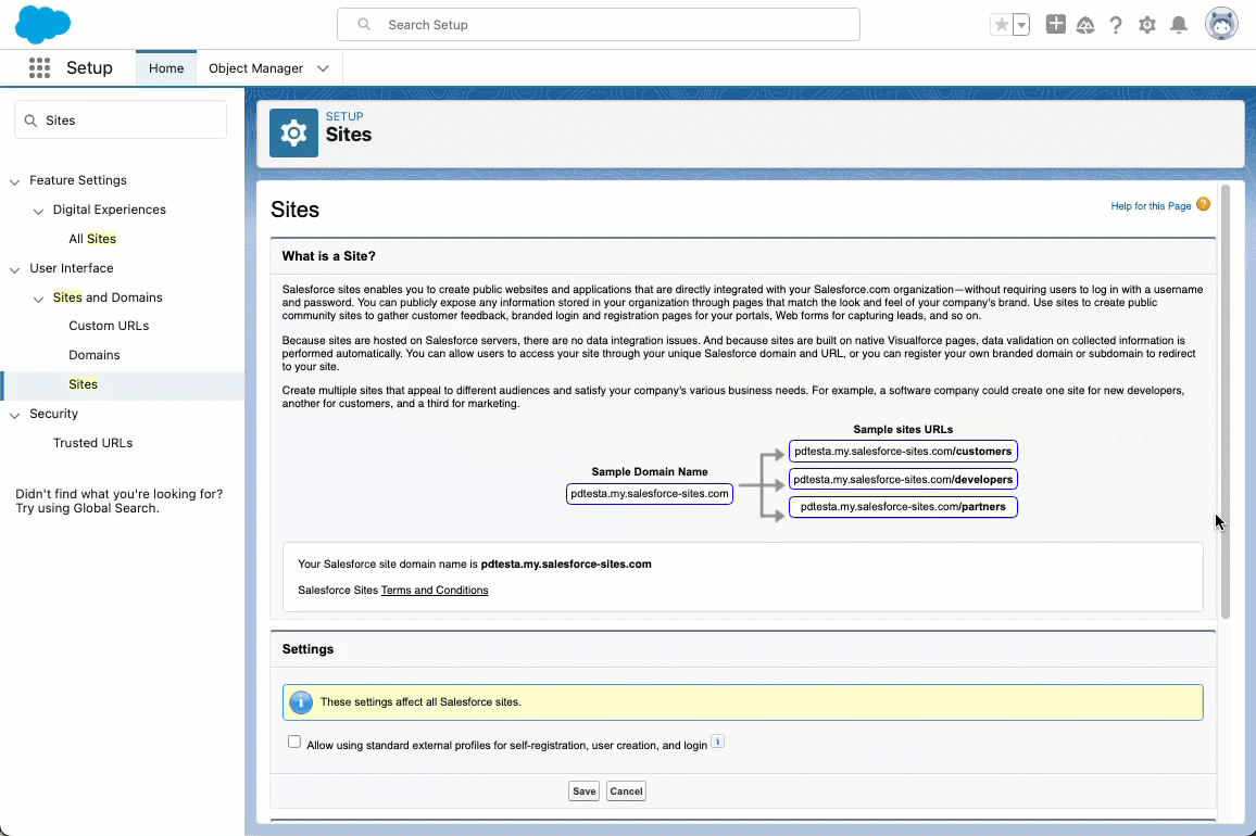 illustration. Salesforce documentation on creating and editing Sites can be found on